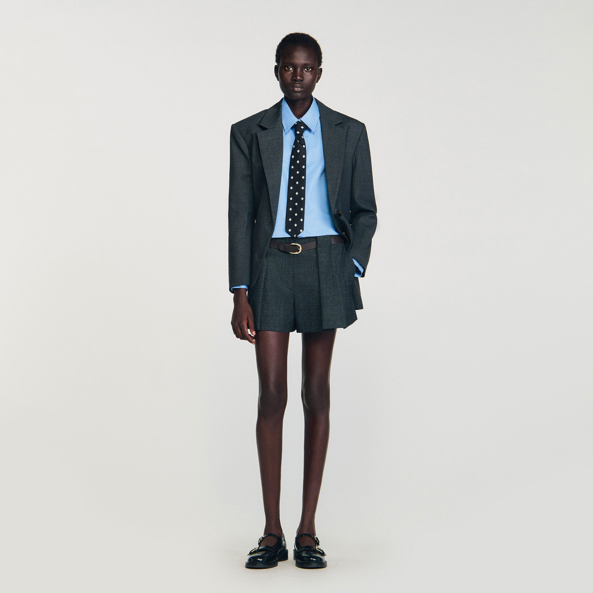 - قميص ساندرو النسائي القصير كبير الحجم مع ربطة عنق قابلة للإزالة