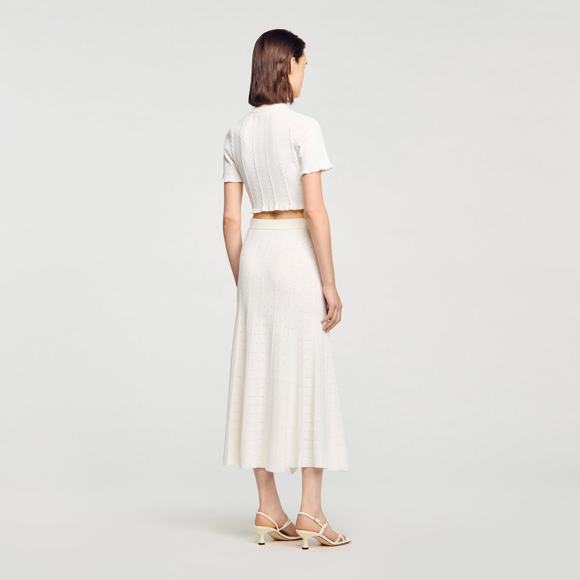 Nice Cropped Pointelle Knit Cardigan Ecru