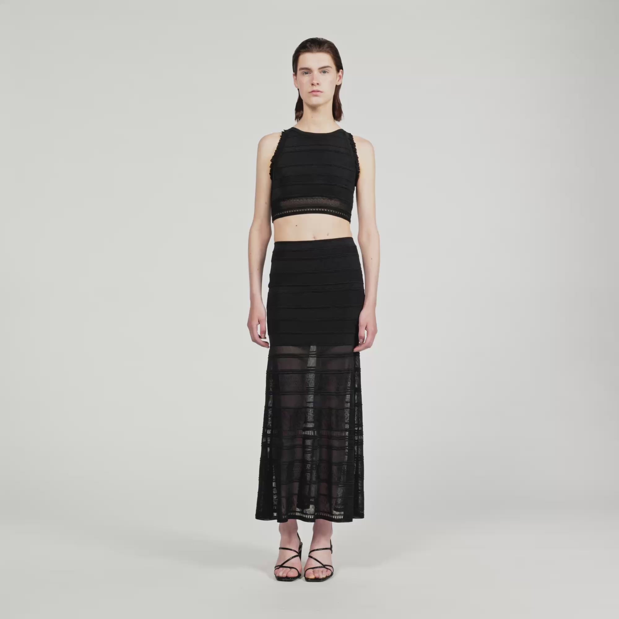 Palma Long Decorative Knit Skirt Black